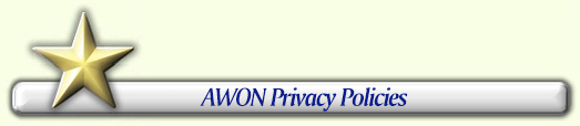 Welcome! We think you'll find that our Privacy Policies really are designed to maintain Your Privacy. Visitors: Visitors to this site are never individually identified and AWON collects no information on visitors to our pages except with their knowledge and as specified by our Guestbook, Membership Application and Bookstore pages, and as voluntarily submitted.