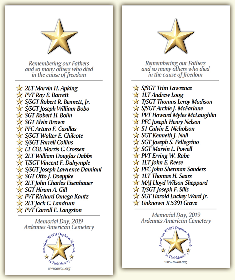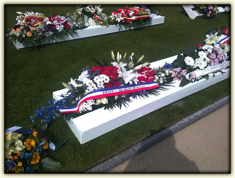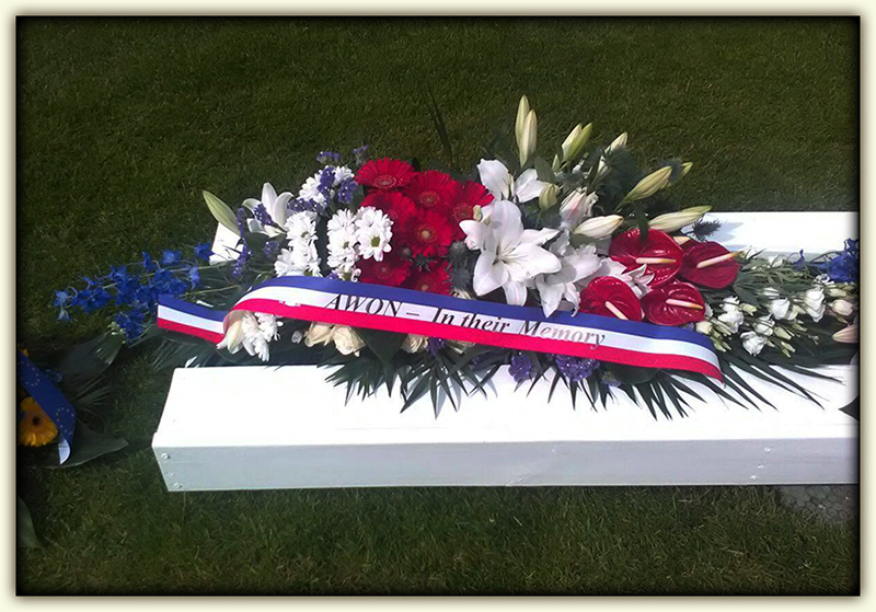 The AWON wreath in the staging area at Ardennes American Cemetery, 2019