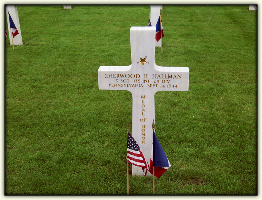 On 13 September '44, SSGT Sherwood Hallman single-handedly captured an important German machine gun nest,