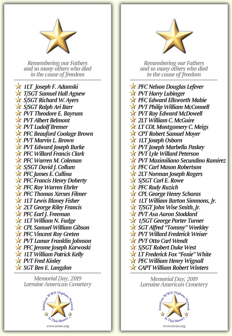 The Wreaths and Banners at Lorraine American remembered 56 men by name –
