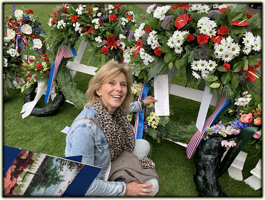 Edith, a longtime Dutch grave adopter at Margraten is proud to read names of the men on the Banners.