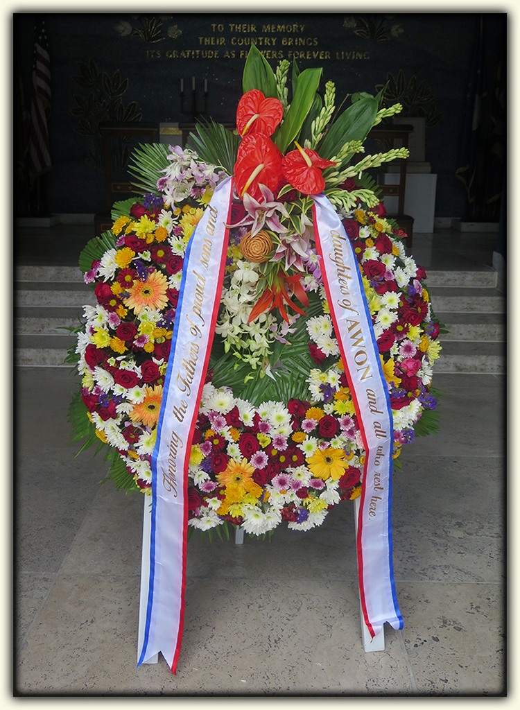 Group Leader and AWON Manila Coordinator Patty Temte presented this wreath on Memorial Day 2010.