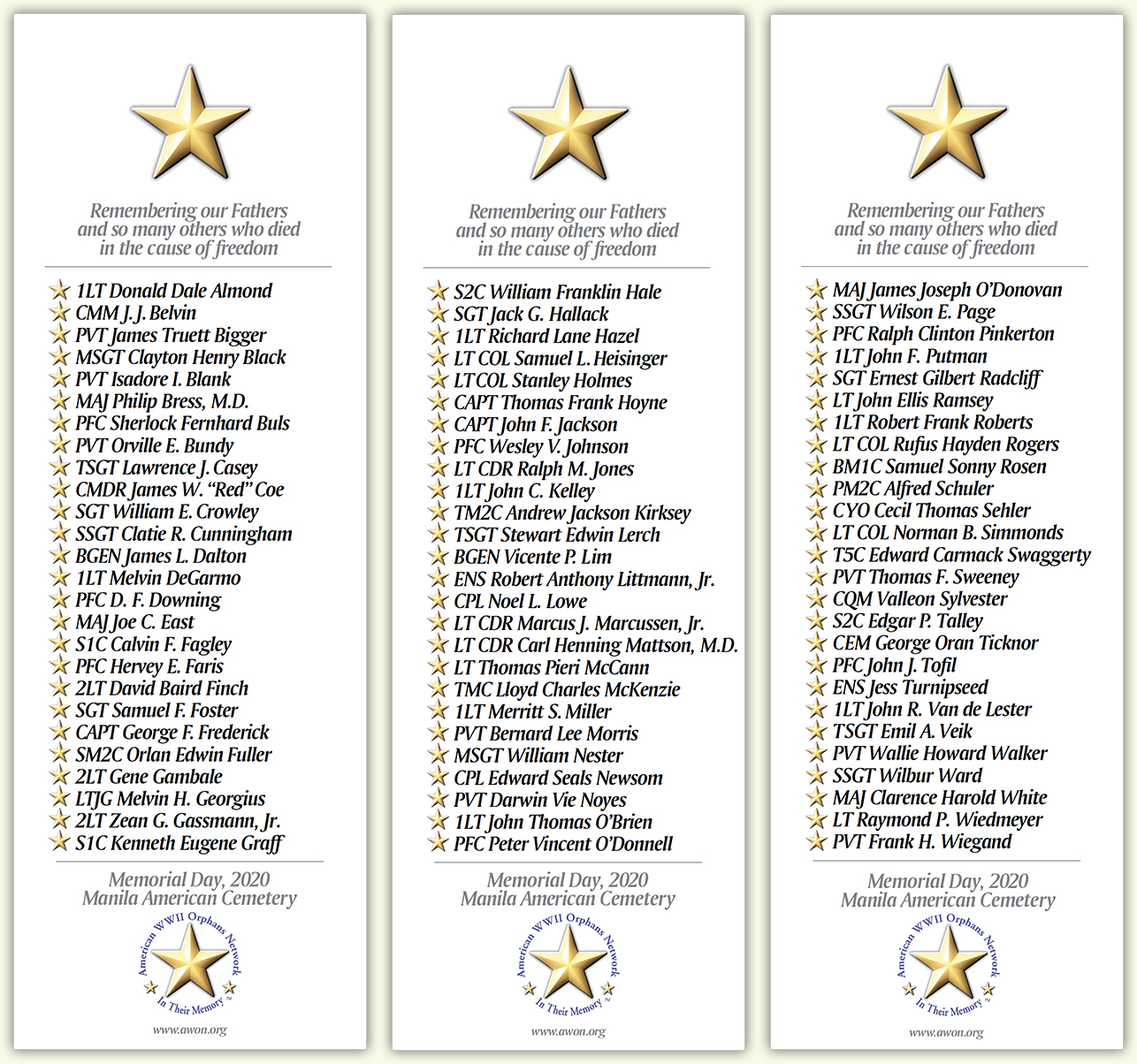 © 2020 • The AWON sons and daughters of Manila American • Rik Peirson and Jean Rhinehart, Temporary Coordinators • All rights reserved.
