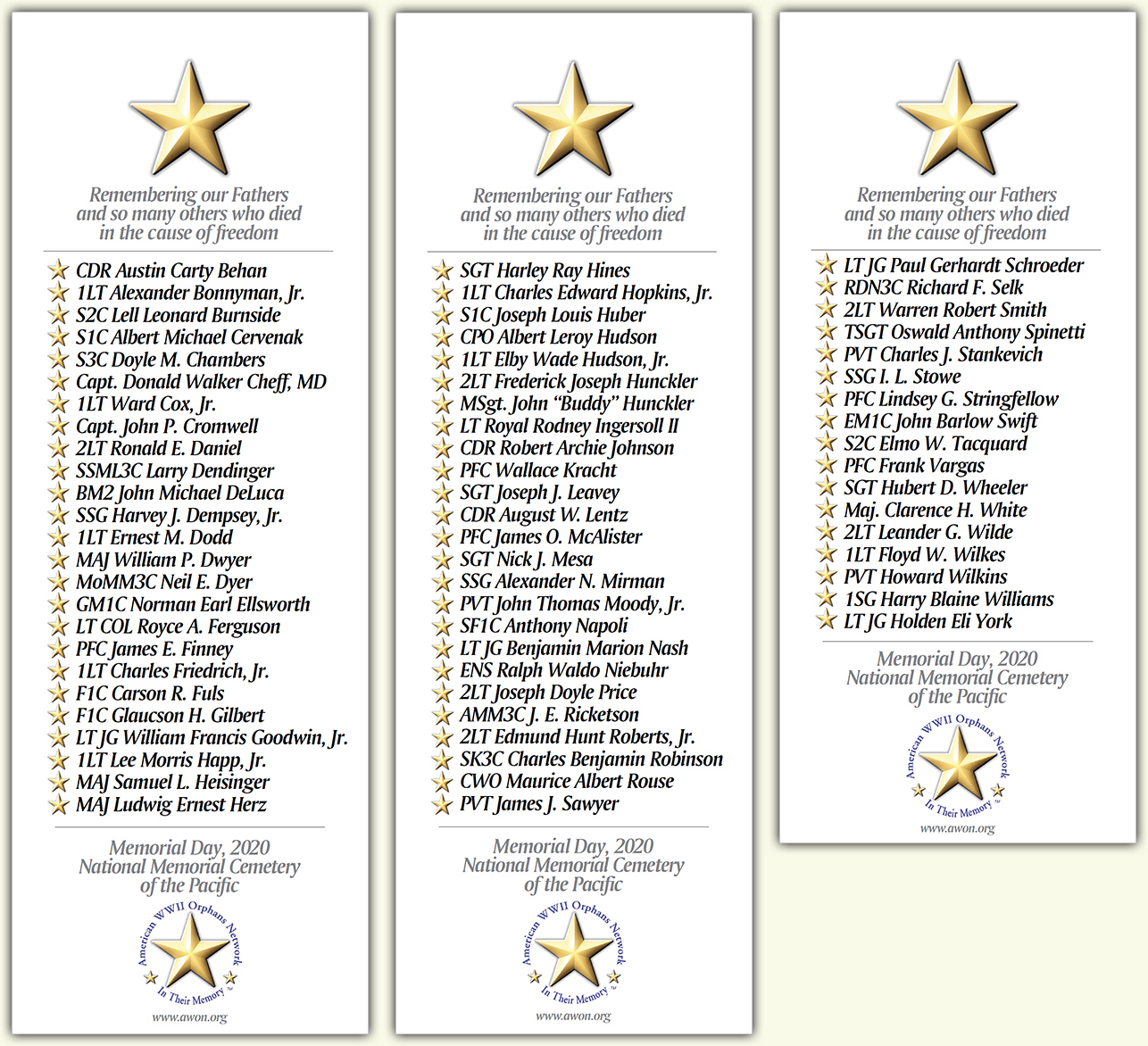 We want to thank the sons and daughters, other family, and the next of kin of the men of Cemetery of the Pacific for contributing over