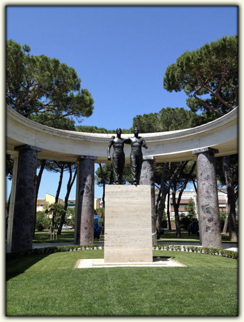 The spirit of Sicily-Rome is embodied in the central statue of "Brothers in Arms."