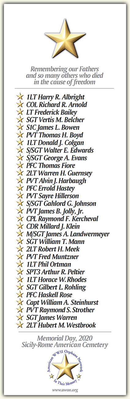 We want to thank the sons and daughters, other family, and the next of kin of the men of Sicily-Rome American for contributing over