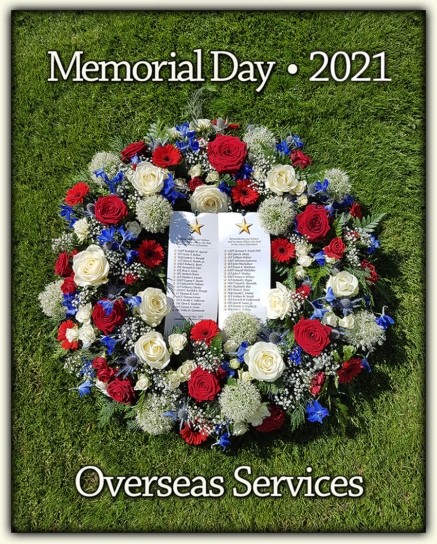 > Memorial Day Services happen overseas Saturday, May 29th and Sunday, May 30th